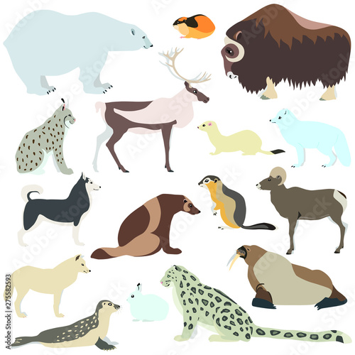 Cartoon Illustration Of Polar Animals Isolated On White Background Such As Polar Bear Arctic Fox Lemming Caribou Seal Walrus Etc Buy This Stock Vector And Explore Similar Vectors At Adobe Stock