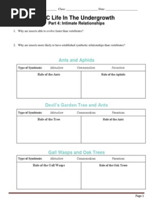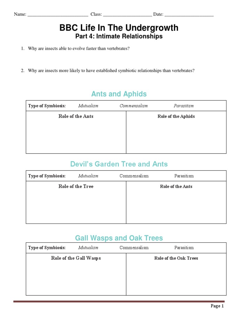 Bbc Life In The Undergrowth Intimate Relations Worksheet