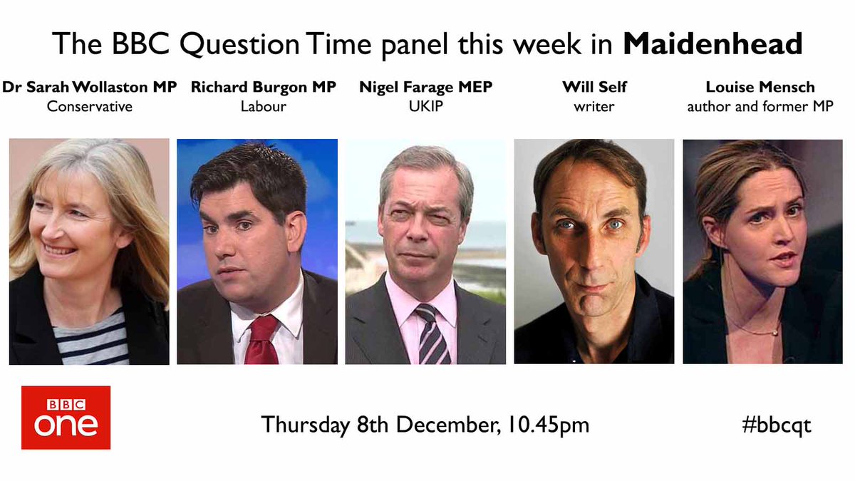 Bbc Question Time On Twitter Here S Thursday S Complete Bbcqt Panel 10 45pm On Bbc One Sarahwollaston Richardburgon Nigel Farage Wself Louisemensch Https T Co Zgymyc5hxi