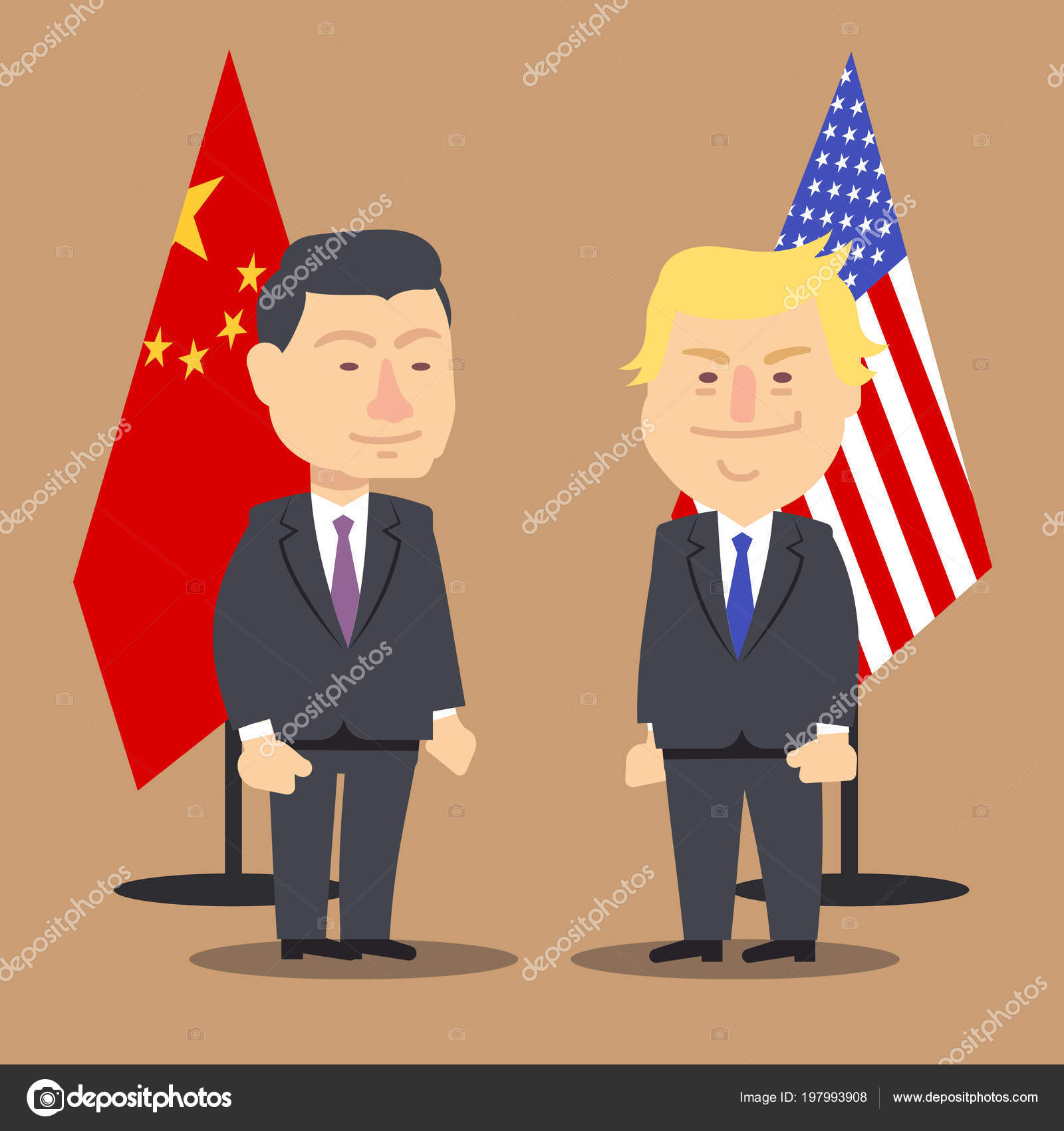 Xi Jinping And Donald Trump Standing Together With China And Usa Flags Vector Illustration Cartoon Political Caricature Stock Vector C Microone 197993908