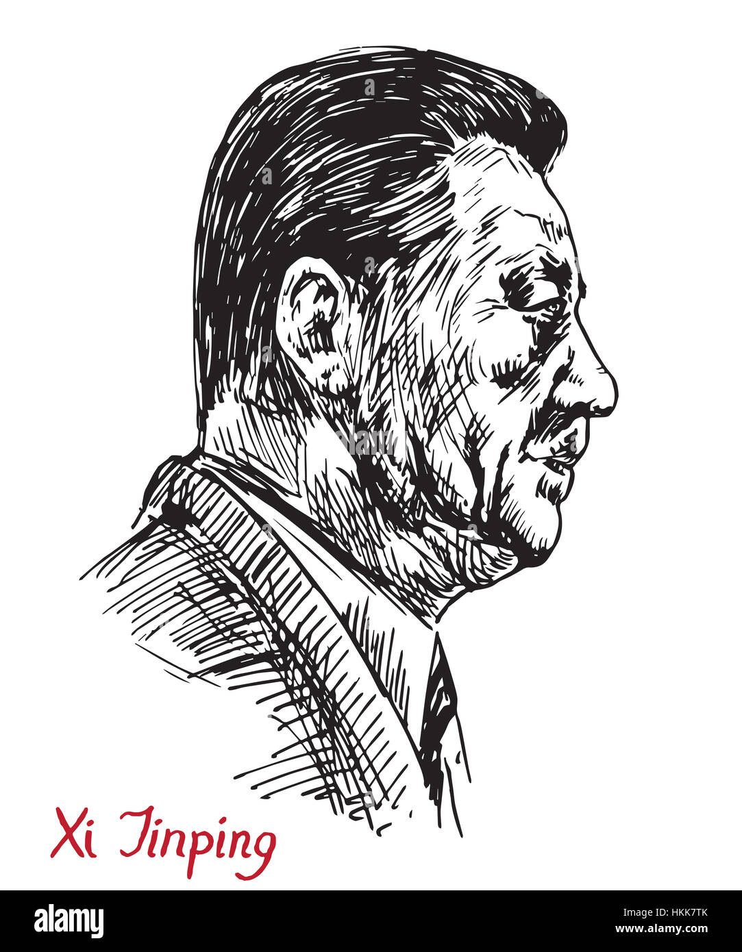 Xi Jinping Engraved Vector Portrait With Ink Contours Chinese Stock Photo Picture And Royalty Free Image Image 135436806