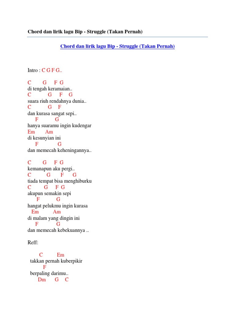 Lirik Dan Chord Lagu Indo