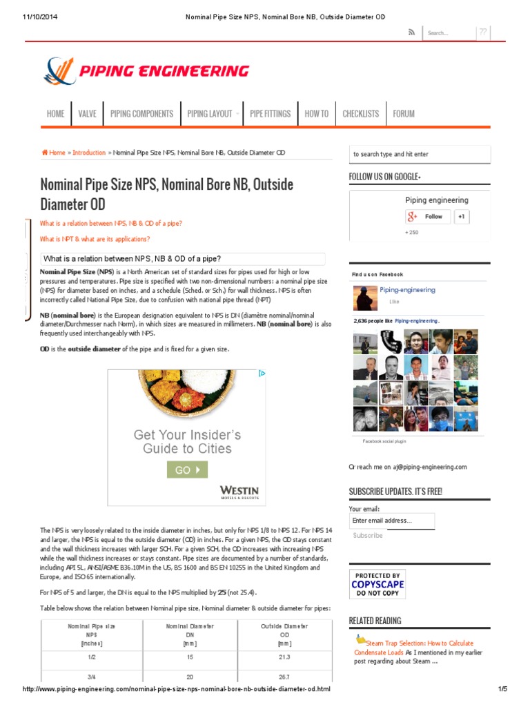 Nominal Pipe Size Nps Nominal Bore Nb Outside Diameter Od