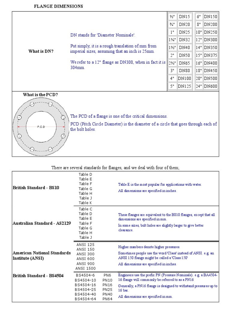 Flange Tables Covering 15mm 1 2 To 600mm 24 Flanges Flowstar Uk Limited