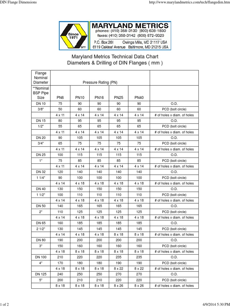 Din 2501 Flange Dimensions And Drilling Maryland Metrics