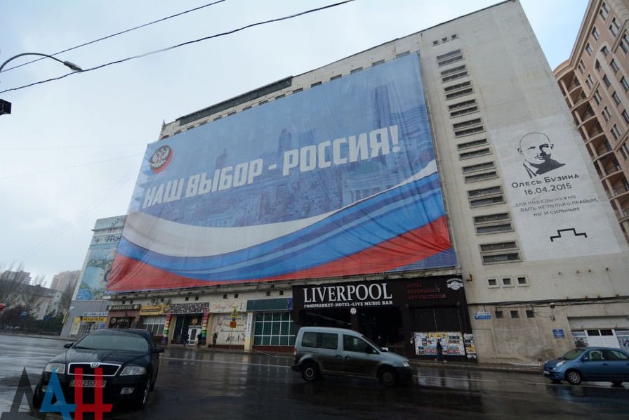 Fabrice Deprez On Twitter The Russia Backed Separatist Donetsk People S Republic Unveiled A Huge Banner Featuring The Slogan Our Choice Is Russia Five Years After The Annexation Of Crimea There Is No Indication