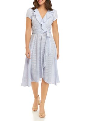 Dn Designs Women S Ruffle Stripe Faux Wrap Dress Belk