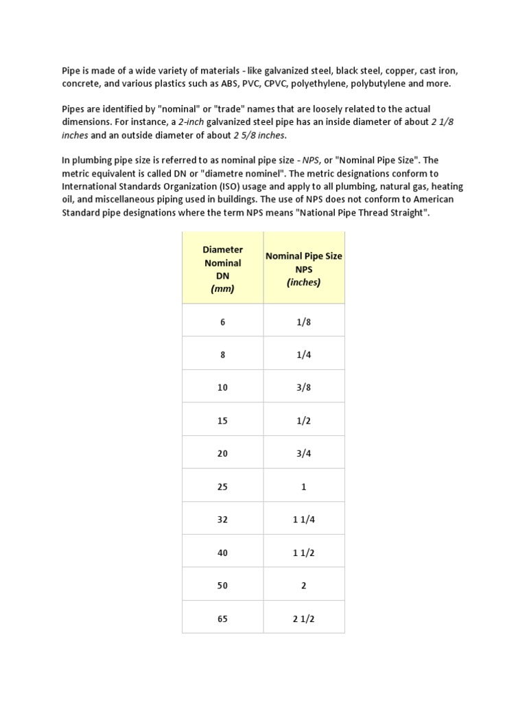 Nps Nominal Pipe Size And Dn Diametre Nominal