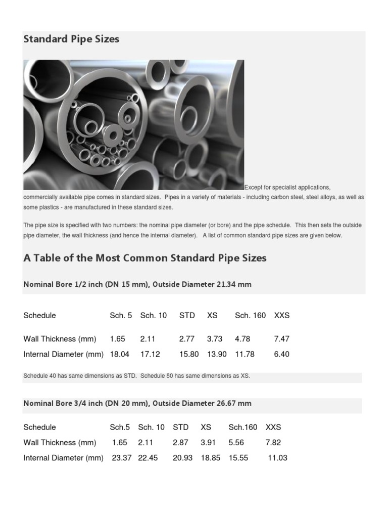 A Table Of The Most Common Standard Pipe Sizes Nominal Bore 1 2 Inch Dn 15 Mm Outside Diameter Mm Pdf Free Download