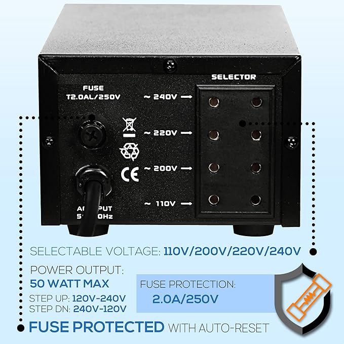 Amazon Com Step Up And Down Converter 50 Watt Voltage Converter Transformer W Usb Charging Port Uk Power Adapter Ac 110 200 To 220 240 Volt Vice Versa 110v 200v 220v 240v Input Voltage Pyramid Pvct150u Electronics