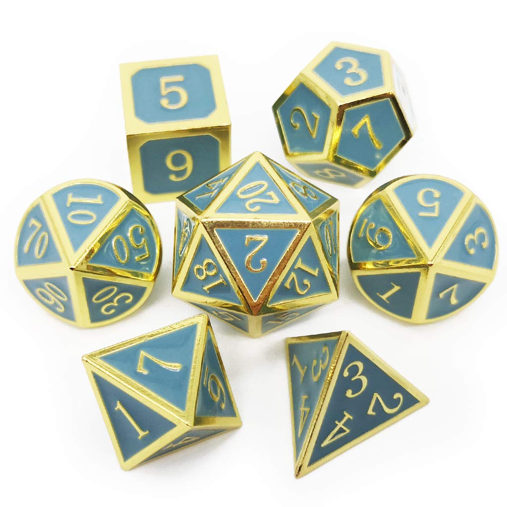 Amazon Com Haxtec Metal Dnd Dice Set 7 Die Gold Blue Metal D D Dice For Dungeons And Dragons Games Glossy Enamel Dice Gold Blue Toys Games