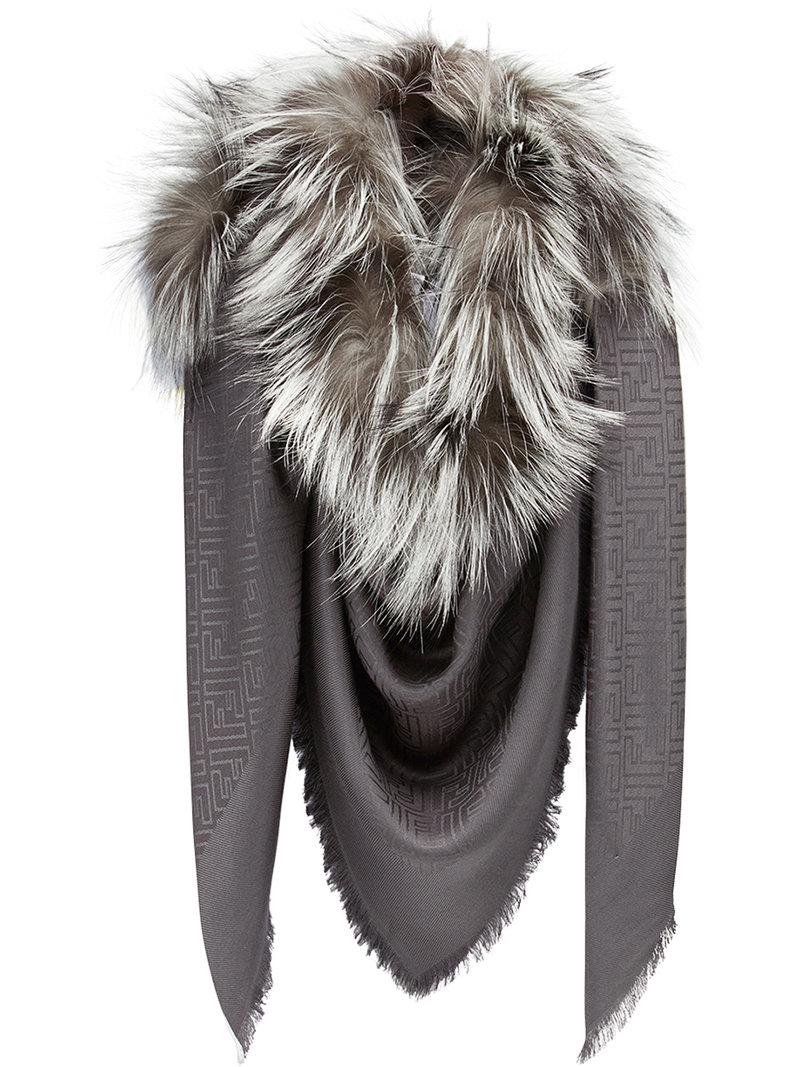 Fendi Touch Of Fur Scarf In Grey Wool And Fur Reebonz Saudi Arabia