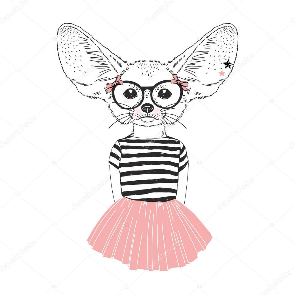 Cute Fennec Fox Girl In Skirt Furry Art Illustration Fashion Animals Hipster Animals Premium Vector In Adobe Illustrator Ai Ai Format Encapsulated Postscript Eps Eps Format
