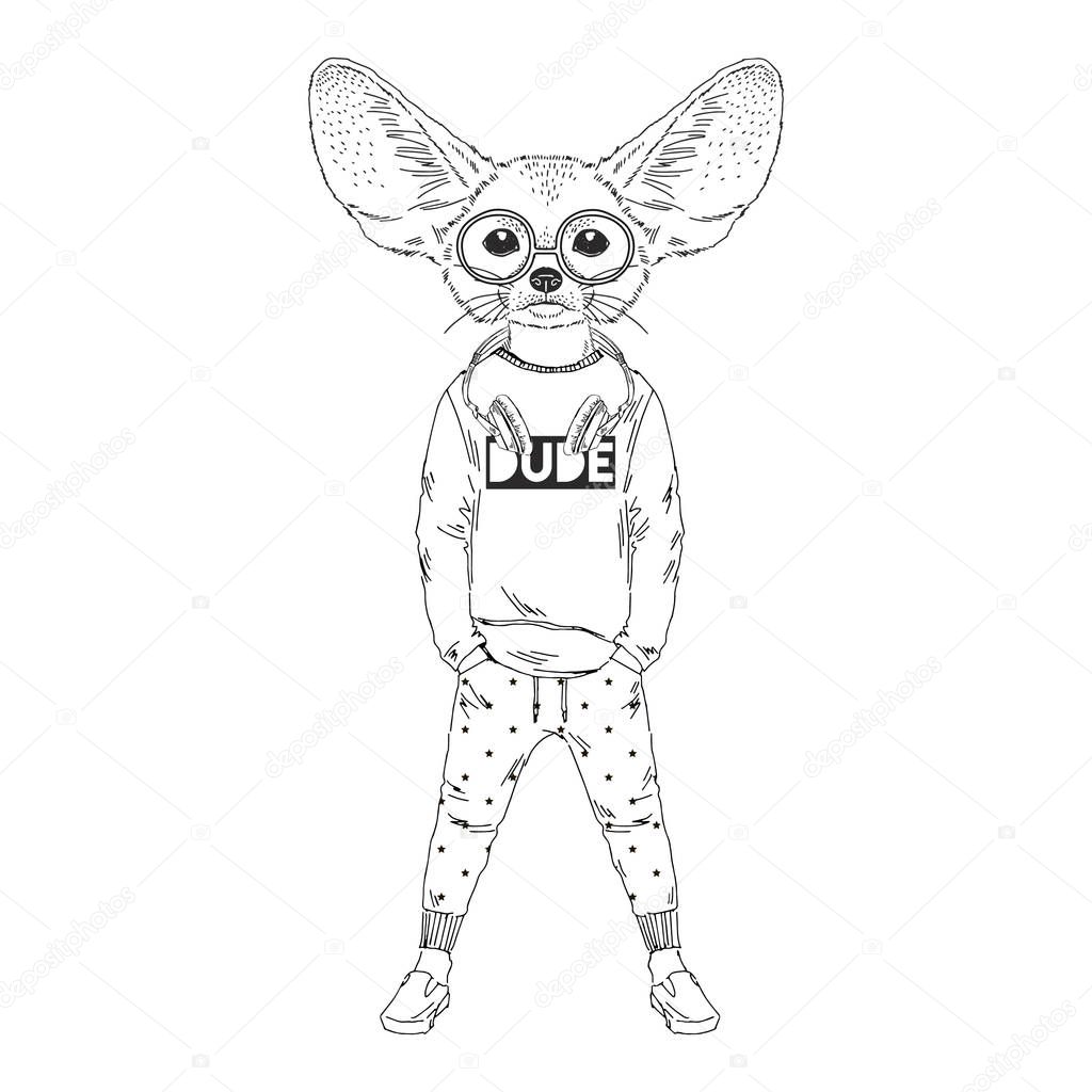 Cute Fennec Fox Boy Hipster With Headphones Furry Art Illustration Fashion Animals Hipster Animals Premium Vector In Adobe Illustrator Ai Ai Format Encapsulated Postscript Eps Eps Format
