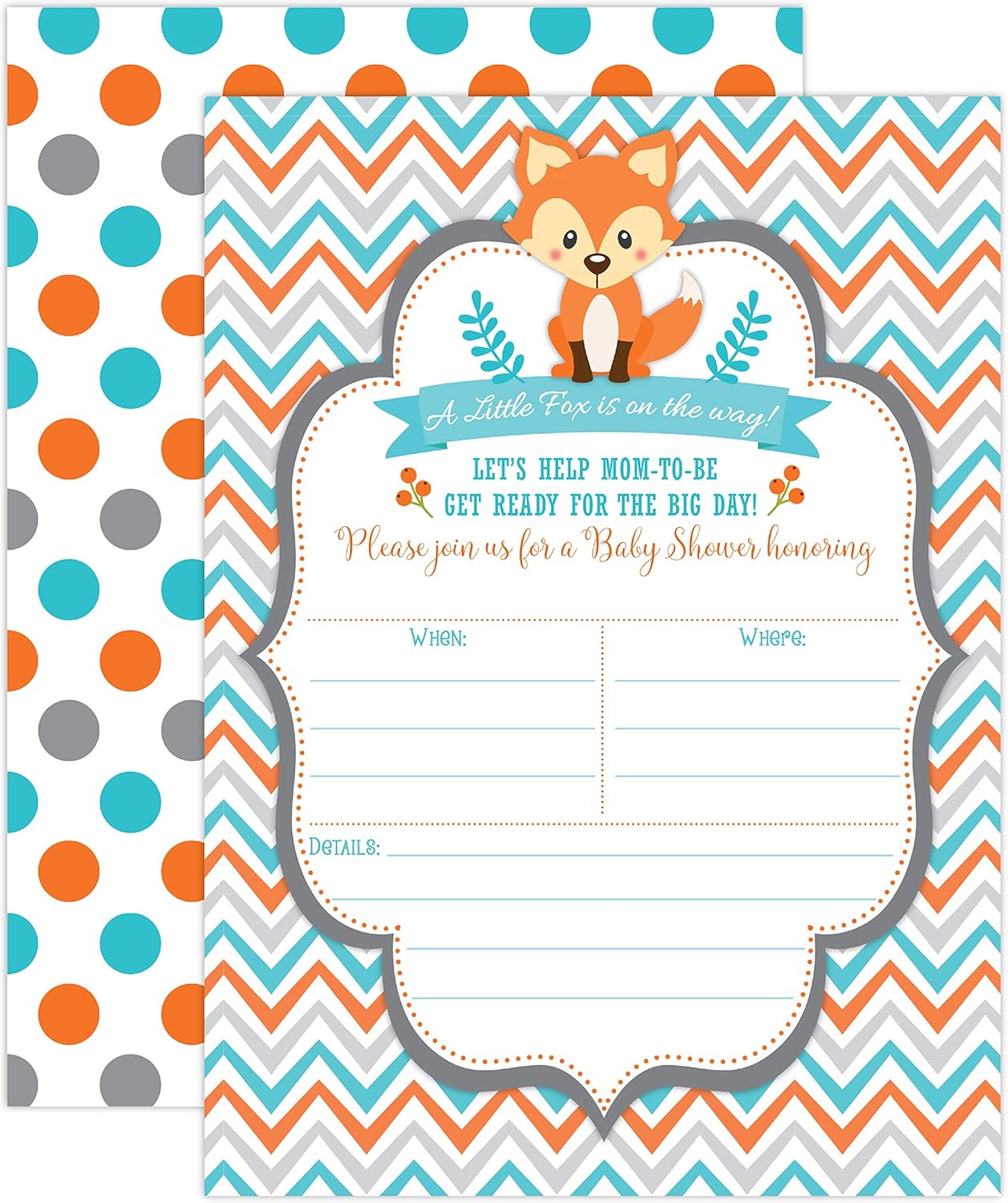 Amazon Com Fox Baby Shower Invitations Fill In Style 20 Count With Envelopes Kitchen Dining