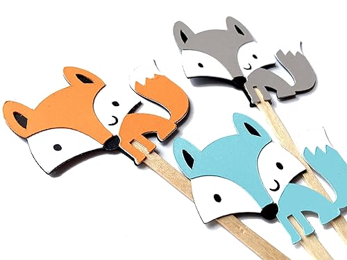 Amazon Com Baby Boy Fox Cupcake Toppers Set Of 12 Paper Blue Woodland Animal Baby Shower Forest Cupcake Topper Fox Cake Topper Fox Baby Shower Handmade