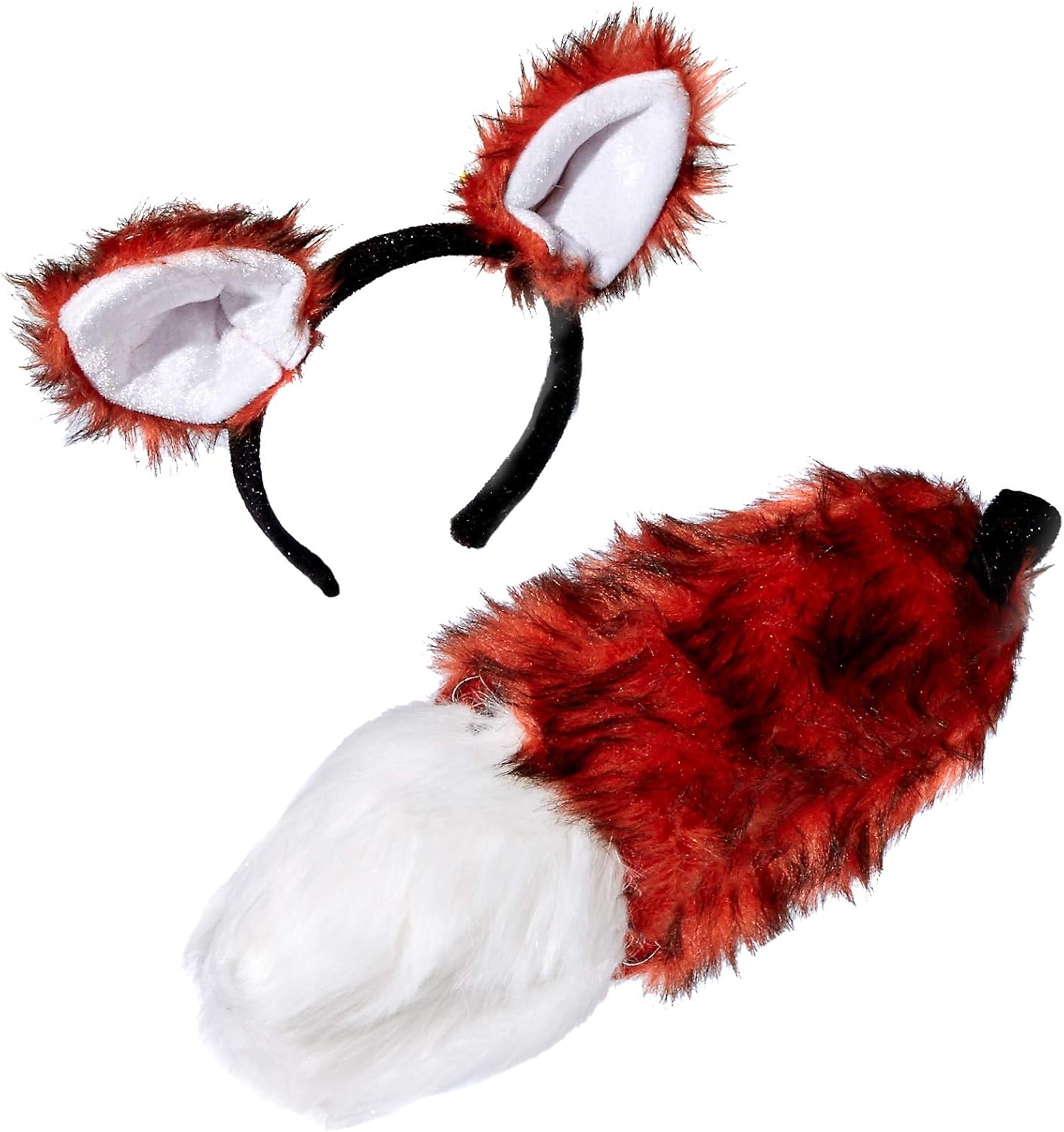 Furry Fox Ears Headband Tail Set Party Time Inc