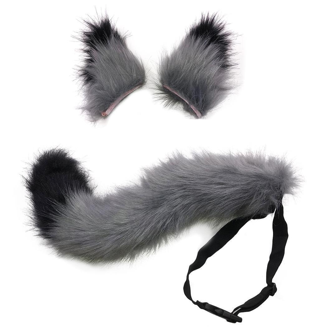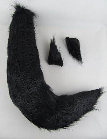 Happylifehere Furry Fox Ears Fox Tail Unisex Adult Fancy Dress Cosplay Costume Halloween Party 25 Tail Black And Fashion
