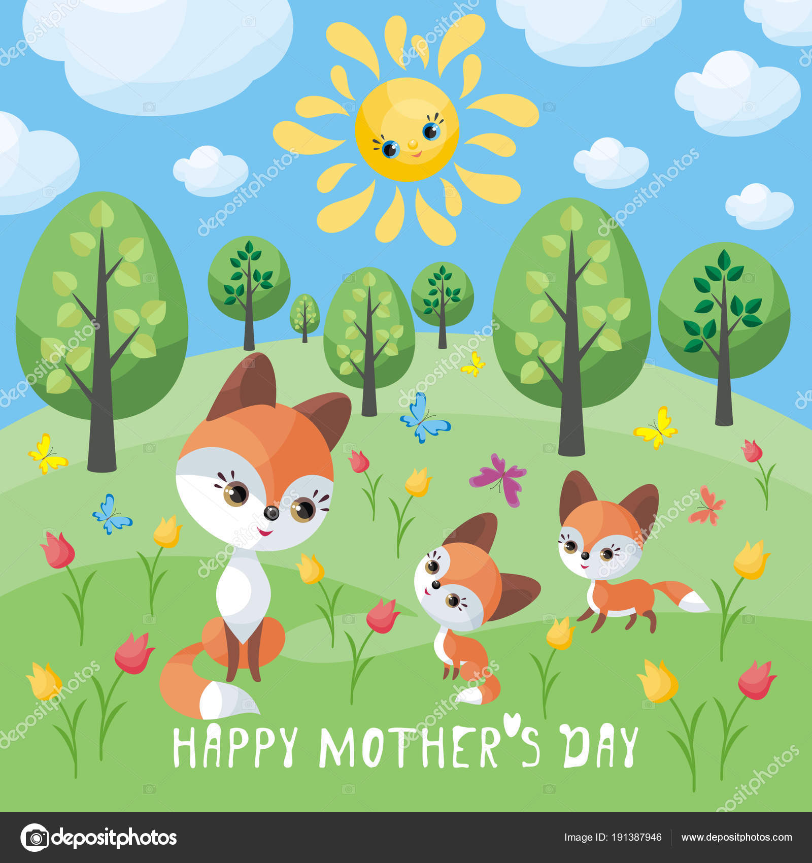 Fox Family Mothers Day Greeting Card Cute Animals Cubs Colorful Stock Vector C Belova8516 Yandex Ru 191387946