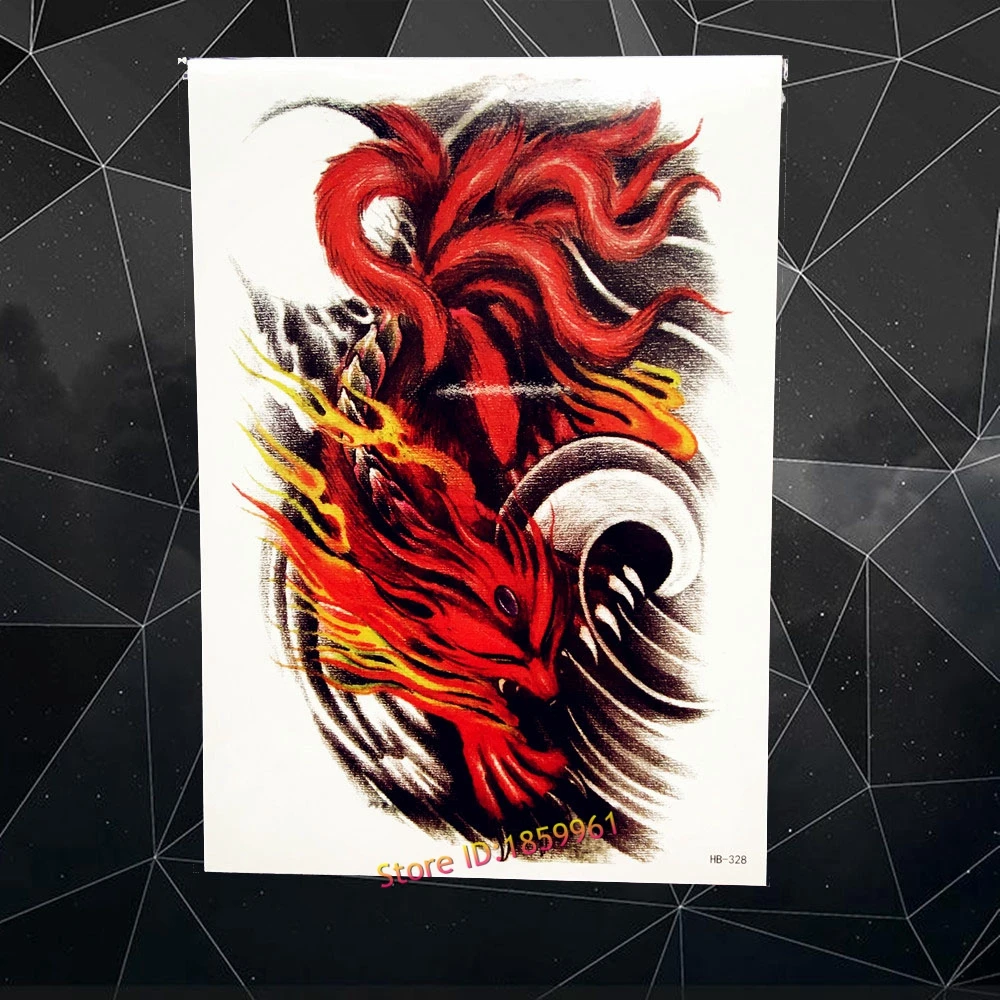 Flash Fire Nine Tail Red Fox Temporary Tattoo Sticker For Men Women Waterproof Body Art Tatoo Decals Fake Tattoo Stickers Ahb328 Stickers School Sticker Funstickers Color Aliexpress