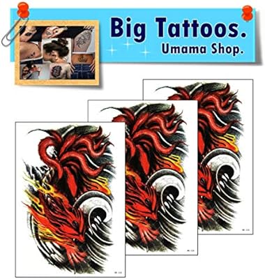 Amazon Com Umama Big Tattoos 3 Sheets Fox Temporary Tattoo Body Art Tattoo Sticker 3d Waterproof Men Women Realistic Tattoos Red Fox Wolf Flame Fire Cartoon Pattern Arts Crafts Sewing