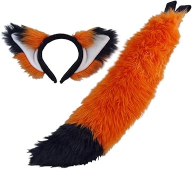 Amazon Com Pawstar Orange Furry Fox Tail Ears Costume Set Orange Black Clothing