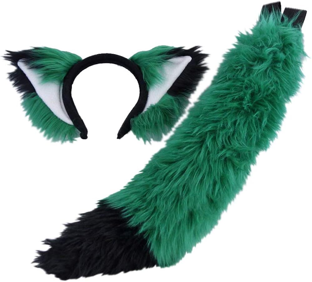 Amazon Com Pawstar Green Furry Fox Tail Ears Costume Set Green Black Clothing