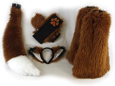 Amazon Com Pawstar Furry Fox Costume Ear Headband Big Tail Paw Leg Warmers Set Rust White Clothing