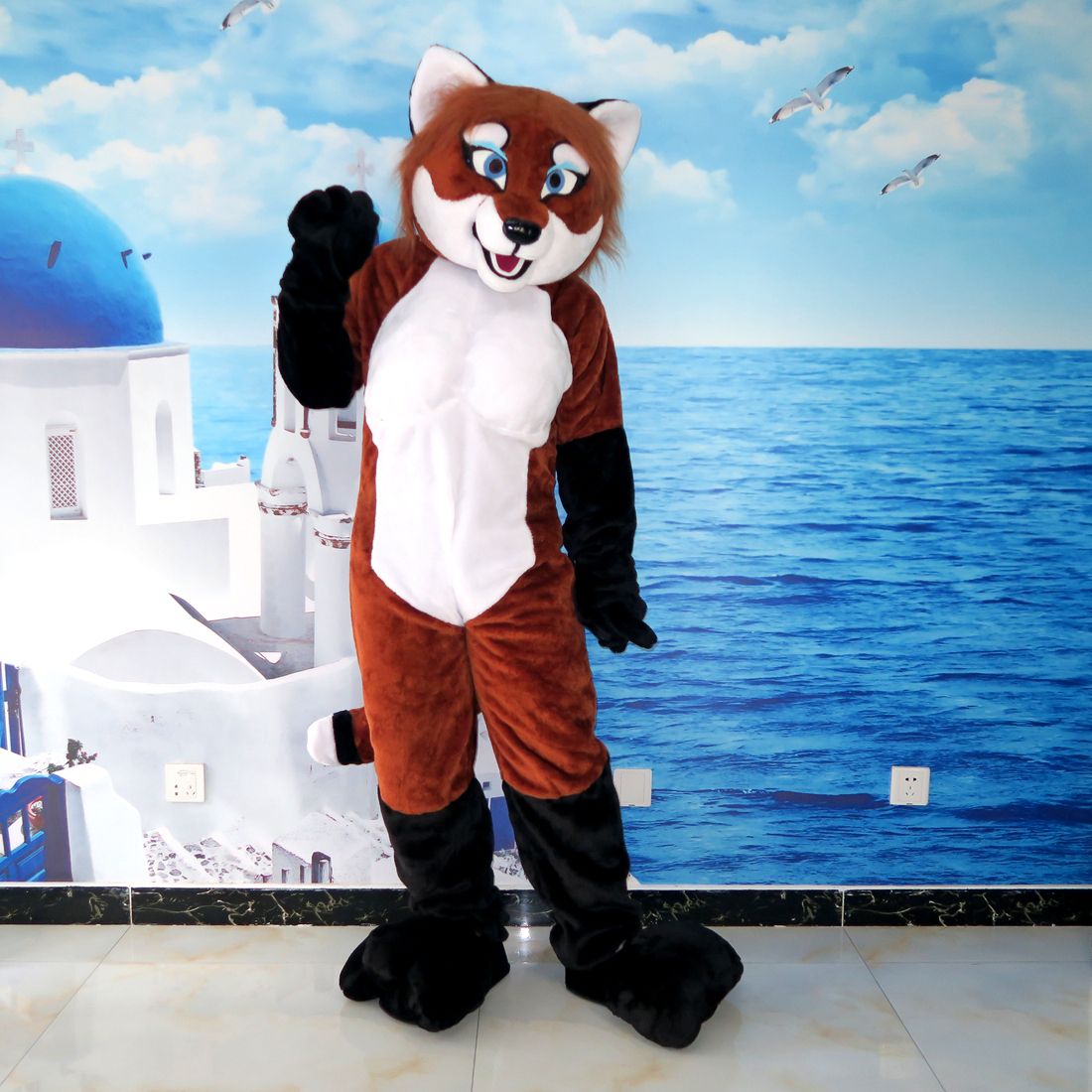 Halloween Adult Fursuit Wolf Dog Long Fur Brown Husky Furry Mascot Costume Parade Fox Dog Suit Unisex Outfit Mascot Aliexpress