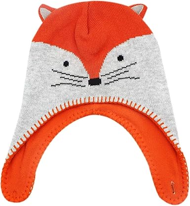 Amazon Com Rarity Us Kids Winter Knit Hat Warm Cute Fox Earflap Fleece Lining Beanie For Baby Girls Boys Toddler L 2 5 Years Head Circumference19 Large Clothing