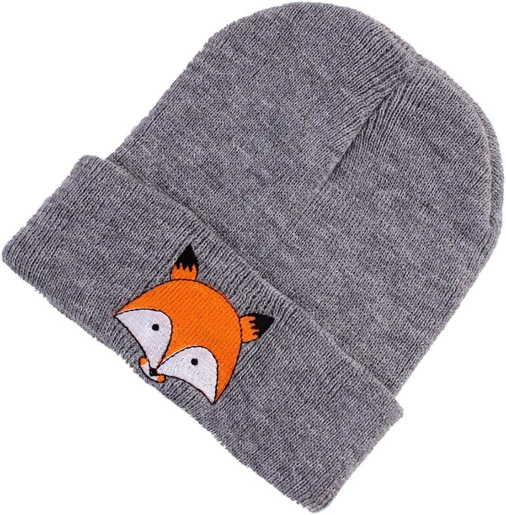 Amazon Com Children S Knitted Hat Animal Cartoon Fox Baby Fall And Winter Style Hats Kids Warm Winter Cap Light Grey Clothing