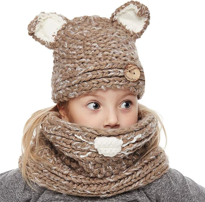 Amazon Com Bibitime Kids Knit Fox Ear Hood Hat Scarf Beanie Neck Windproof Winter Warm Cap Clothing