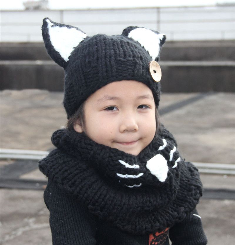 Kids Fox Hat Children S Knit Wool Handmade Beanie Hat Wrap Knit Bib Suit Hat New Cute Scarf Caps Men S Skullies Beanies Aliexpress