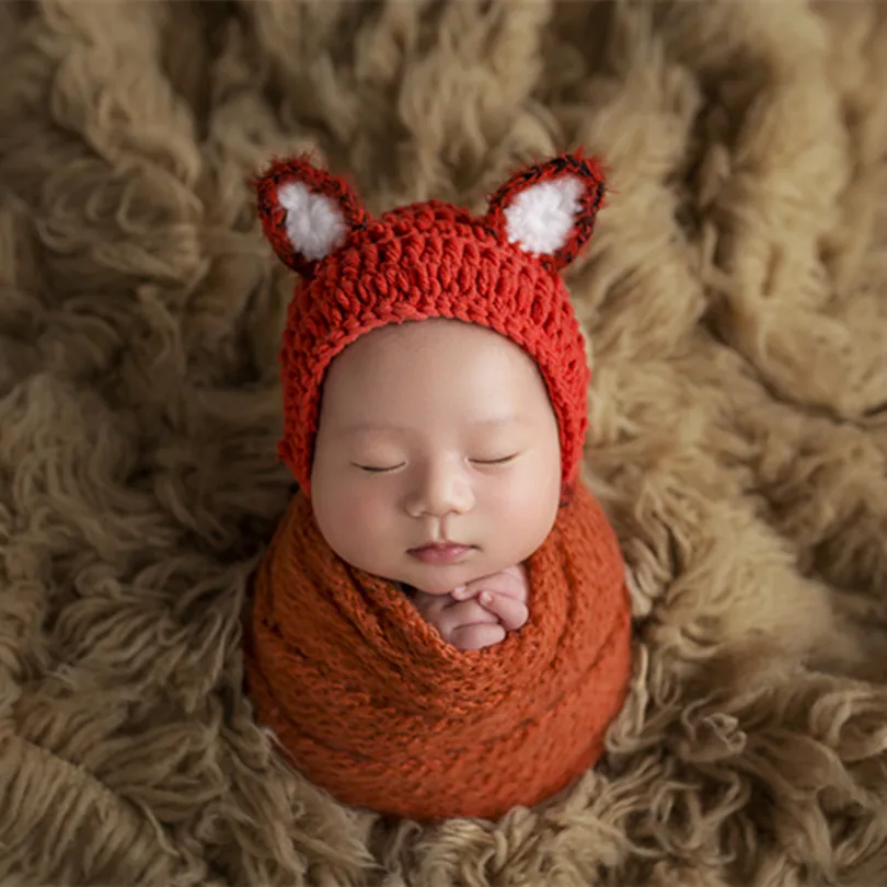 Knitted Cotton Fox Hat Pattern Newborn Boy Hat Props Crochet Lovely Animal Bonnet Infant Bonnet Baby Photography Props Hats Caps Aliexpress