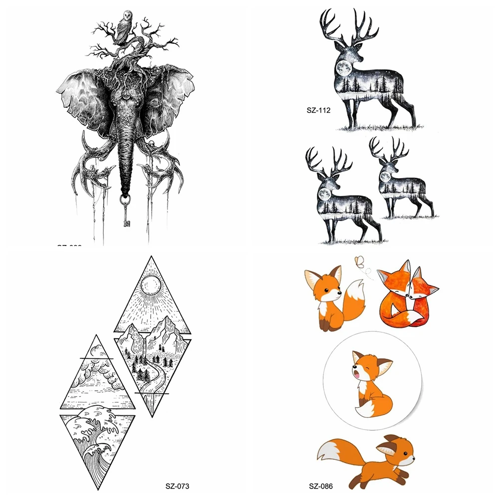 Branch Elephant Temporary Tattoo Stickers Watercolor Fox Women Body Arm Waterproof Tattoo Men Mountain Deer Fake Tatoos Diamond Temporary Tattoos Aliexpress