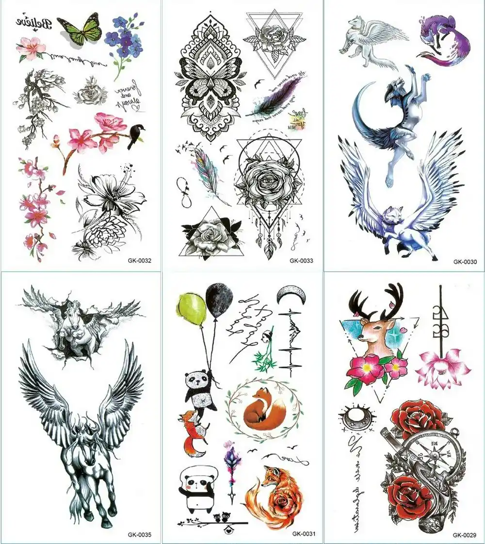 Wolf Drawing With Wings Body Art Flower Floral Panda Fox Feminine Fake Tattoos Reindeer Rose Watch Temporary Tattoo Arm Shoulder Temporary Tattoos Aliexpress