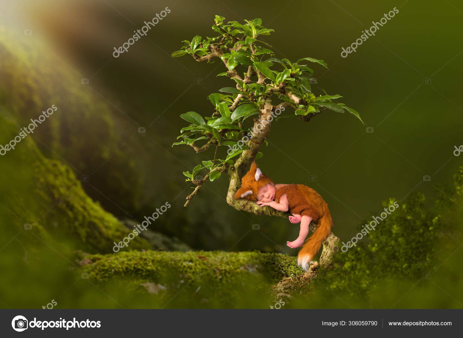 Baby In Fox Outfit In Bonsai Tree Stock Photo C Klanneke 306059790