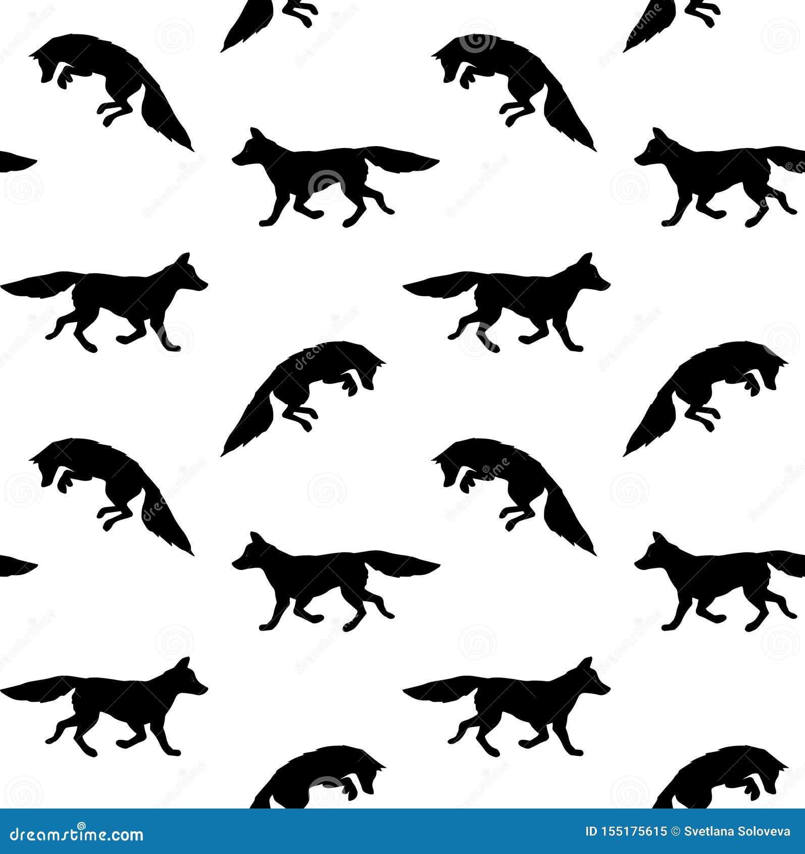 Vector Seamless Pattern Of Black Fox Silhouette Stock Vector Illustration Of Pretty Drawing 155175615