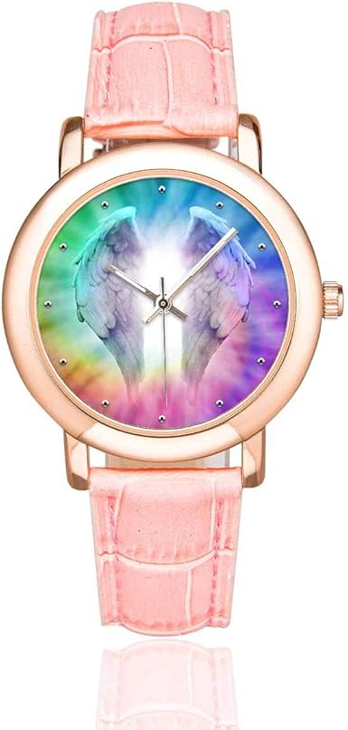 Amazon Com Interestprint Angel Wings On Rainbow Spiral Women S Waterproof Wrist Watch With Pink Leather Band Clothing