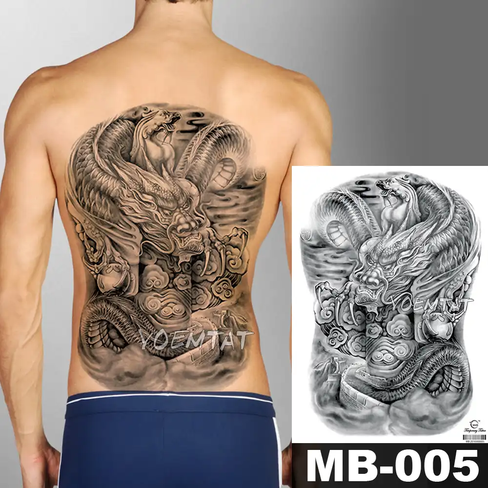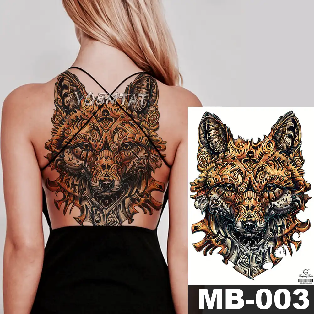 48 35 Cm Large Tattoo Stickers Mechanical Fox Wings Buddha Waterproof Temporary Flash Tattoos Full Back Chest Body For Men Women Temporary Tattoos Aliexpress