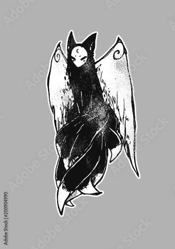 Kitsune Fox With Wings And Nine Tails Japanese Mythology Magic Illustration With Fantasy Creature Graphic Hand Drawn Can Be Used Like Card Avatar Tattoo Wallpaper Etc Buy This Stock Vector And