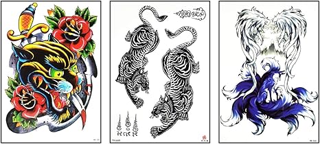 Amazon Com Gs912 Large Tattoos Pack Of 3 Panther Sword Tiger Muay Thai Boxing Fox Wolf Angel Wings Tattoo Fashion Women Men Temporary Tattoos Stickers Body Art Fake Waterproof 02 Arts Crafts