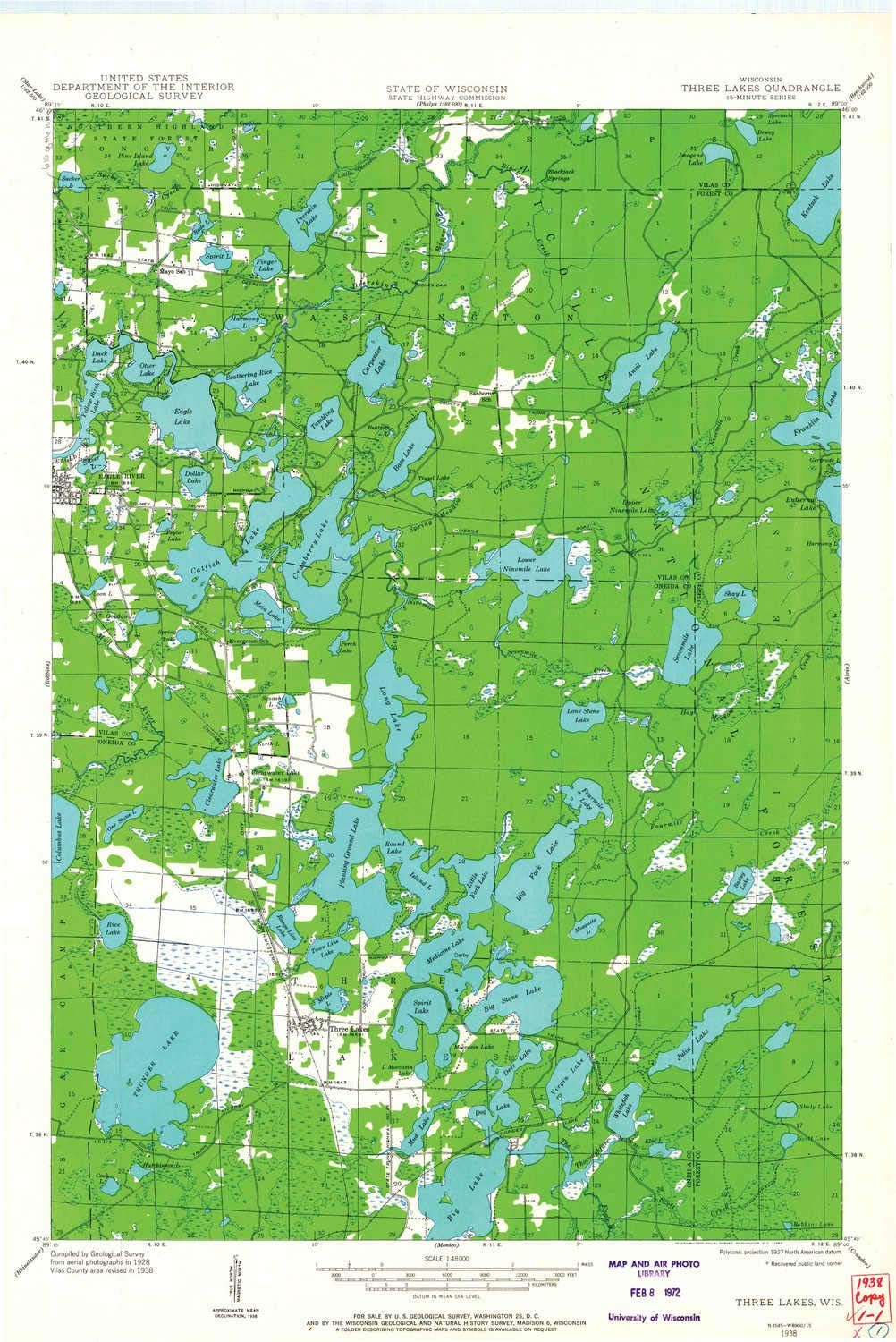 Amazon Com Yellowmaps Three Lakes Wi Topo Map 1 48000 Scale 15 X 15 Minute Historical 1938 Updated 1964 27 06 X 18 07 In Paper Sports Outdoors