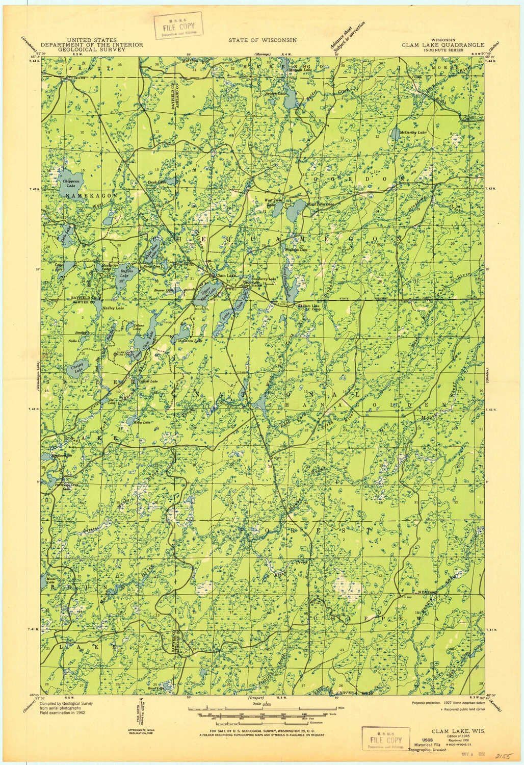 Amazon Com Yellowmaps Clam Lake Wi Topo Map 1 48000 Scale 15 X 15 Minute Historical 1945 Updated 1950 27 3 X 18 7 In Paper Sports Outdoors