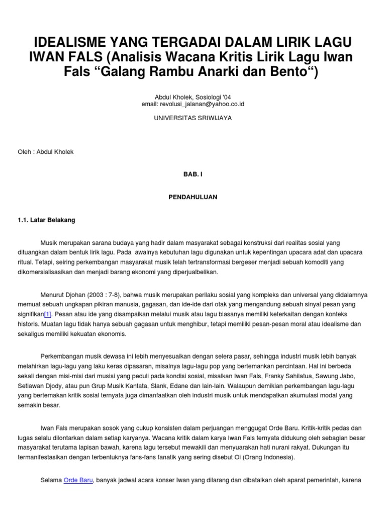 Doc Filosofi Pendidikan Dan Iwan Fals Skripsi Tentang Lagu Iwan Fals Pramono Putra Academia Edu