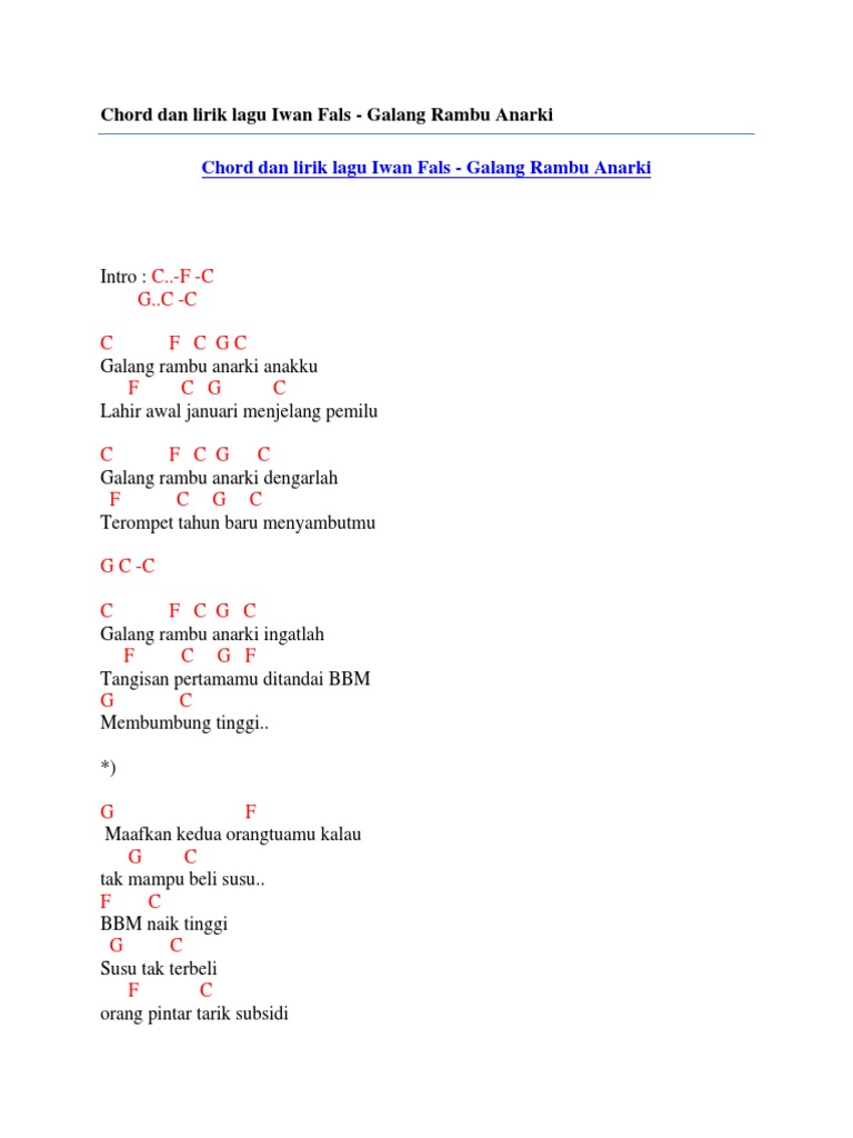 Chord Dan Lirik Lagu Iwan Fals Galang Rambu Anarki By Chord Zila Issuu