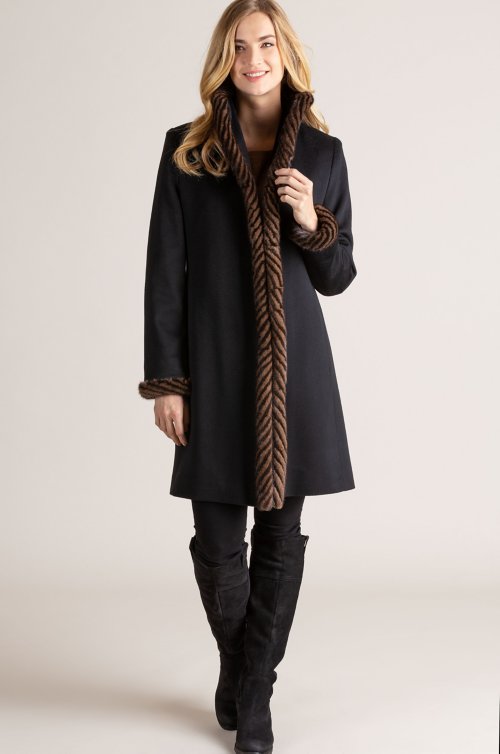Abbie Loro Piana Wool Coat With Spiral Mink Fur Trim Overland