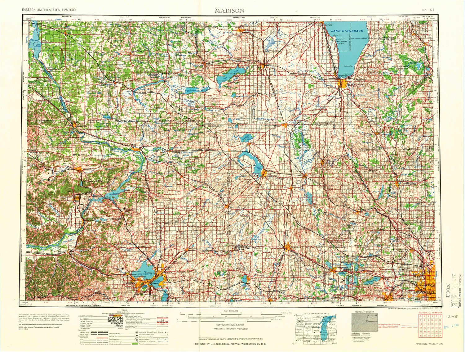 Amazon Com Yellowmaps Madison Wi Topo Map 1 250000 Scale 1 X 2 Degree Historical 1960 22 X 29 11 In Polypropylene Sports Outdoors