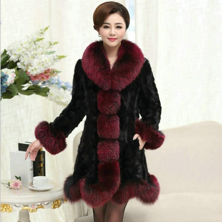 Warm Winter Faux Mink Fur Coat Women Fashion Patchwork Fox Fur Long Jacket Coats Female Casual Thick Coat Outerwear Jackets Xxxl Abkclothing