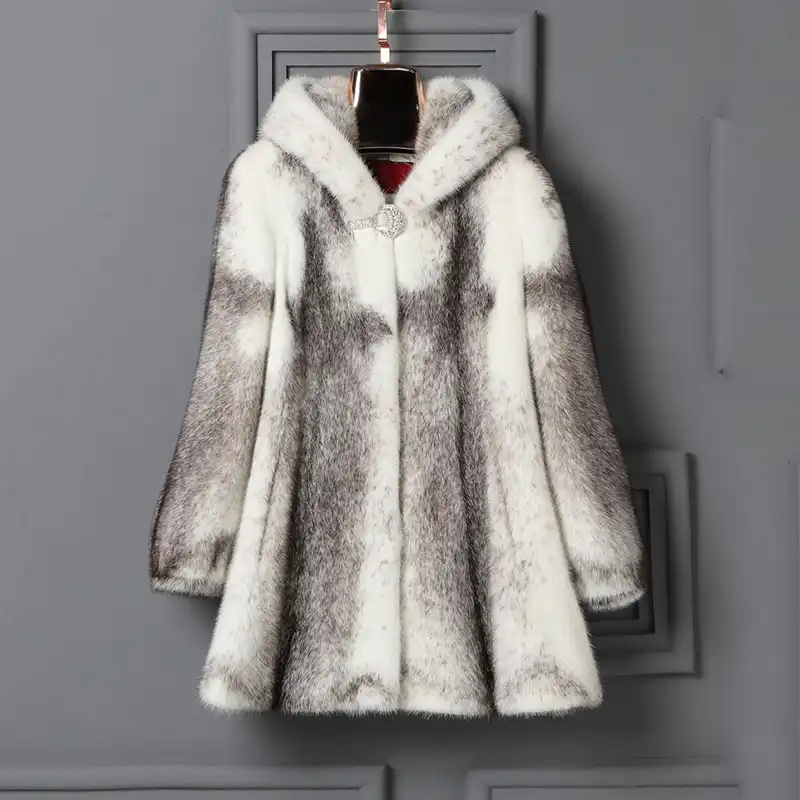 Lvchi Overcoat Ladies With Cap Midi Mink Coats Gray And White Velvet Primary Color Fur Outerwear Woman Cross Mink Fur Clothes Mink Fur Fur Minkladies Mink Coat Aliexpress
